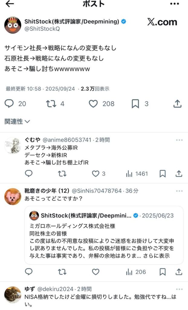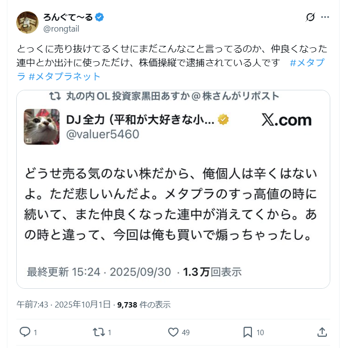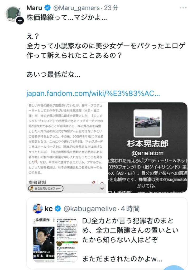 10/5 未分類 X Facebook はてブ Pocket LINE コピー 2025.10.052025.10.12 株価操縦って…マジかよ…え?全力って小説家なのに美少女ゲーをパクったエロゲ作って訴えられたことあるの?あいつ最低だな…https://t.co/0plmXx00WV https://t.co/BjYbkuswvP pic.twitter.com/0mRpxPOGAp— Maru (@Maru_gamers) September 29, 2025 瀬尾さんのお宅におるんか… https://t.co/306M4utbEW— Maru (@Maru_gamers) September 30, 2025