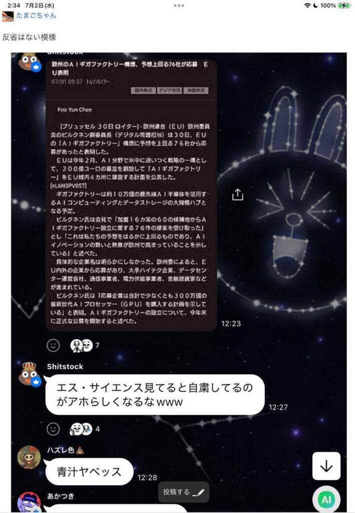 社長売りの前のポストなんて引っ張ってきてもなんとも思いませんよwww https://t.co/ehXYKU5umk— ShitStock(株式評論家/Deepmining) (@ShitStockQ) June 18, 2025